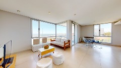 - Living comedor con amplios ventanales y panorámica vista al mar